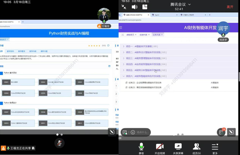 3月18日,课程组与融智国创专家围绕AI技术与会计课程深度融合开展专题交流,重点探讨Python财务实战与AI编程、AI财务机器人应用开发、AI财务智能体三门前沿课程的项目任务制教学实施路径。双方确定将以发票核验、薪酬处理、税务预警等真实财务工作案例为依托,让学生在项目实操中掌握智能财务时代核心技能。与会教师就课程衔接、教学节奏把控、实操环节设计等问题与企业专家深入交流,形成多项课程共建共识,为后续课程落地奠定坚实基础。
