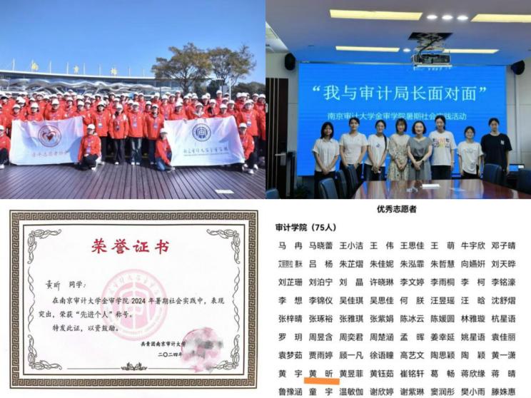她深知“纸上得来终觉浅,绝知此事要躬行”,始终坚持理论联系实际,主动投身志愿服务、社会实践与专业实习,以积极的态度在各类历练中锤炼自身、积累经验。志愿服务中,她曾主动报名成为2025年南京马拉松赛事志愿者,坚守岗位、认真服务赛事,以点滴行动尽己所能传递青年温度;社会实践中,她积极参与审计学院“我与百名审计局长面对面”活动,走进昆山市审计局走访学习,近距离体悟审计实务,虚心向一线工作者请教,不断深化专业认知。此外,她主动争取事务所实习机会,实习期间,认真协助工作人员开展审计核查、凭证整理等基础工作,虚心向前辈请教实务技巧,努力将专业知识运用到实务中,力求做到学用相长、知行合一,在实践中锤炼本领、积累经验。