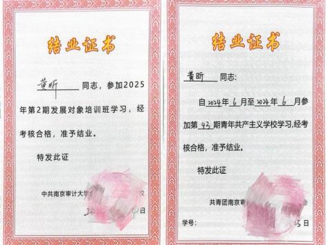入校以来,她始终以共青团员的先进性标准严于律己、砥砺前行,在团的引领下坚定理想追求,逐步向党组织靠拢。在学校的悉心培养下,她先后完成青共校、党校课程学习,系统接受党的理论熏陶,在理论学习与实践磨砺中不断深化对党的认识,最终光荣成为一名中共预备党员。成为预备党员后,她始终以党员标准严格要求自身,主动参与学院党支部组织的理论学习、专题研讨等活动,持续钻研党的创新理论,不断提高政治判断力、政治领悟力、政治执行力,自觉在思想和行动上同党中央保持高度一致;同时恪守社会主义核心价值观,修身正己、乐于助人,在班级服务、团学工作与日常相处中传递正能量,用点滴行动践行党员的责任与担当,展现出从团员到党员的成长蜕变与坚定的理想信念、高尚的道德品格。