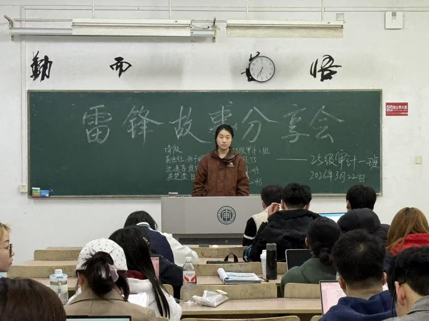 为弘扬雷锋精神,感悟榜样力量,3月19日,23级审计7班和25级审计1班在教室开展“传承雷锋精神,讲述榜样故事”主题故事会活动。活动前期,同学们认真搜集雷锋事迹、摘抄日记、筹备讲稿,班委精心布置会场,营造出浓厚的学习氛围。活动中,同学们依次登台,深情讲述雷锋无私奉献的经典故事,以及身边同学互助友爱的暖心小事。通过沉浸式学习与面对面分享,同学们进一步理解了雷锋精神的时代内涵,在思想共鸣中厚植奉献情怀,让榜样力量真正入脑入心。