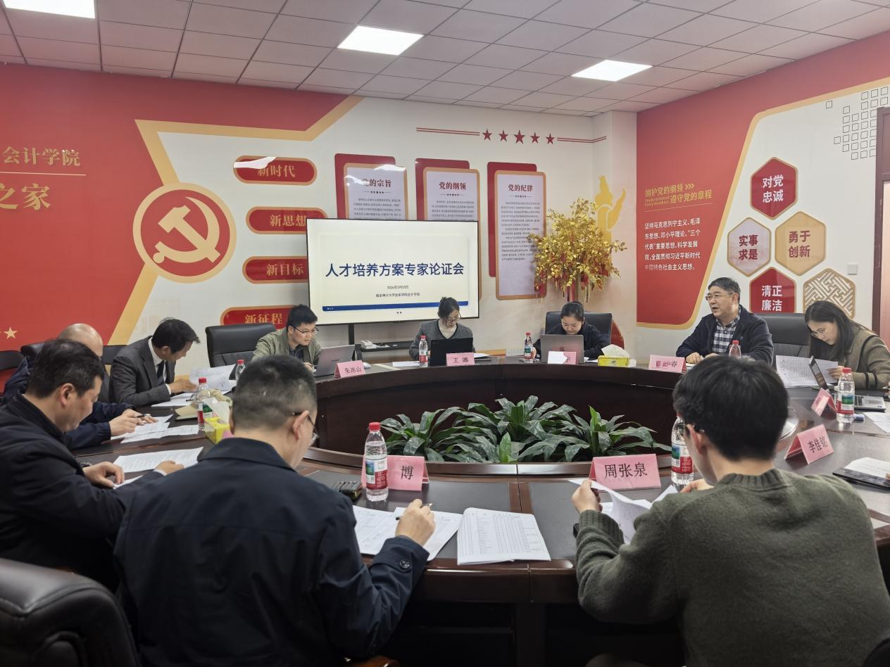 3月25日,会计学院于C西506会议室召开2026版人才培养方案专家论证会,特邀校内外高校专家、企业行业精英为方案修订完善把脉问诊、建言献策。南京财经大学会计学院院长李翔教授,南京林业大学经济管理学院副院长邓德强教授,南京审计大学智能管理会计与内部控制研究院院长程博教授,南京审计大学金审学院教务处处长杨新房、信息科学与工程学院周张泉博士,以及企业专家李佳铭、朱冰山等出席线下论证会。南京审计大学温素彬、许汉友教授则通过通讯咨询方式为方案论证提供书面报告。会议由会计学院院长吴中春主持,副院长胡爱平,各系副主任及骨干教师代表参会。