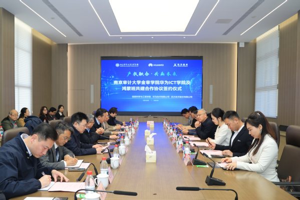 4月1日下午,南京审计大学金审学院华为ICT学院及华为鸿蒙班共建合作协议签约仪式在该校举行。南京审计大学金审学院与华为技术有限公司、深圳市讯方技术股份有限公司三方携手共建华为ICT学院与华为鸿蒙班,同步启动鸿蒙全栈全场景实训室建设,以产教融合、校企协同、资源共享、共赢发展为宗旨,聚力打造ICT与鸿蒙生态人才培养高地,共同开启服务数字中国战略、培育高素质应用型人才的崭新篇章。