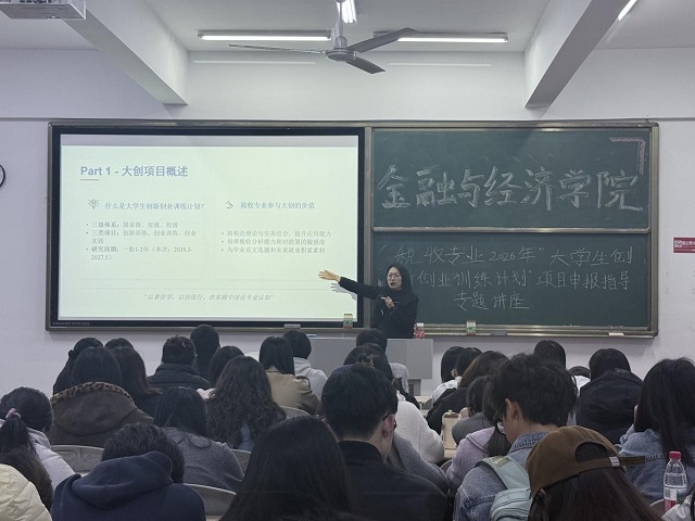 为落实学校卓越人才工程,助力金融与经济学院金穗·卓越领航计划,提升我院学生明晰大学生创新创业训练计划项目申报流程、精准把握选题方向及申报书撰写质量,3月31日晚,我院举办2026年“大学生创新创业训练计划”项目申报指导专题讲座,副教授王洪艳老师作为主讲嘉宾,为学生的大创项目申报工作提供专业指导与支持。