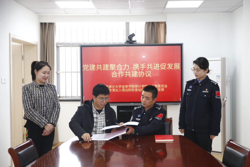 为深入贯彻落实新时代党的建设总要求,探索创新党建工作模式,深化校警合作,推动党建与业务深度融合,近日,南京审计大学金审学院审计学院党支部委员会与南京港出入境边防检查站执勤一队党支部,在南京港边检站党建活动室举行党建共建签约仪式,正式开启校警党建共建新篇章。