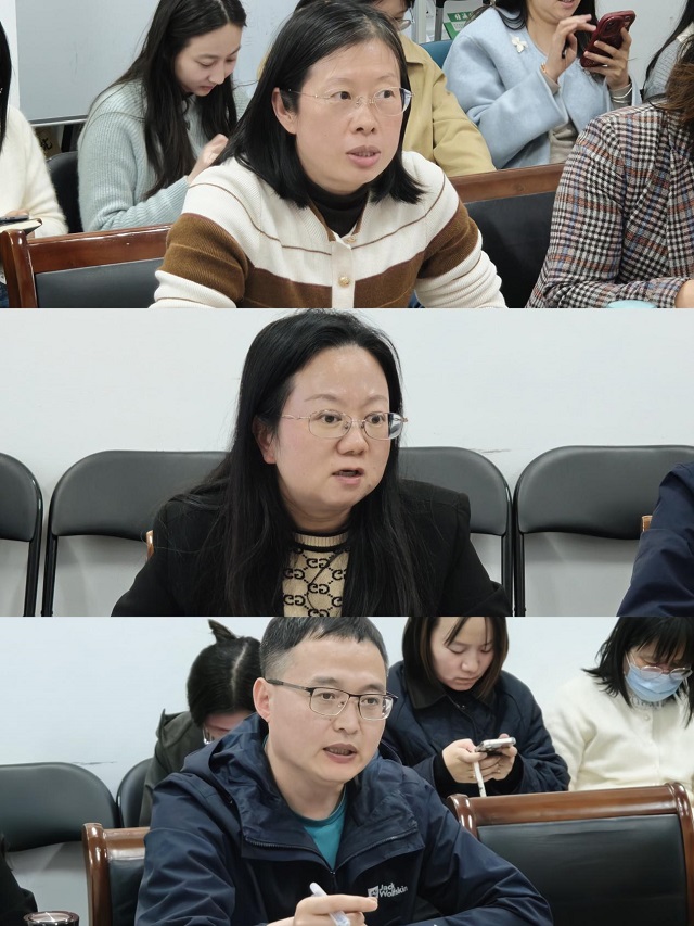 展示结束后,院领导逐一点评,围绕选题意义、教学设计、技术应用、课程思政等方面提出优化建议。吴萍副院长强调,微课作品要对照江苏省微课教学比赛要求,内容聚焦,主题突出,因此选题要进一步凝练核心知识点,同时强调教学设计与技术创新,要合理运用信息技术和教学资源进行教学设计,提升PPT设计的新颖度与视觉吸引力。谢海燕副院长指出,微课设计要注重调动学生积极性,突出核心知识点,自然融入课程思政与人工智能元素,增强课堂的时代感与育人功能。高国生院长总结点评,他充分肯定三位教师的选题与表现,建议进一步结合真实案例,突出价值导向,并注重课件设计的细节打磨,力求在省赛中呈现更高水准的作品。