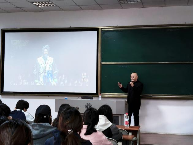 讲座中,姬益波教授结合自身多年设计实践与教学经历,以南艺520时装秀等经典案例为切入点,分享创作理念与实践心得,以深入浅出的方式展开讲解。他强调,故事感是服装设计的核心灵魂,一件优秀的服饰作品,不仅要兼具造型美感与精湛工艺,更要通过设计语言传递情感、理念与叙事内涵,赋予服装更深厚的艺术价值与文化意蕴。