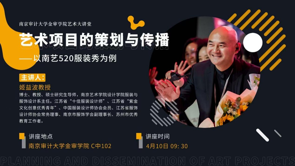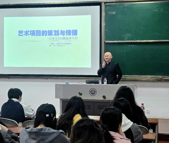 为浓厚学院学术氛围,拓宽师生专业视野,2026年4月10日,艺术设计学院特邀南京艺术学院设计学院服装与服饰设计系主任姬益波教授,开展以艺术项目的策划与传播——以南艺520服装秀为例为主题的专题学术讲座。我院师生到场聆听学习。
