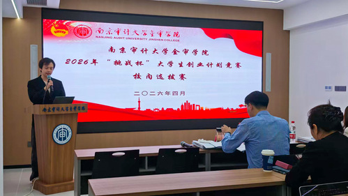 为深度激发我校学子的科创热情,厚植创新沃土,引导广大学生在科学探索中磨砺思维、增长才干,全力备战第十五届“挑战杯”全国大学生创业计划竞赛,2026年4月17日下午,南京审计大学金审学院“挑战杯”校内选拔赛在一站式学生社区大厅成功举办。本次决赛特邀南京审计大学杨章静教授担任评审专家,为各支参赛队伍精准指导、答疑解惑。