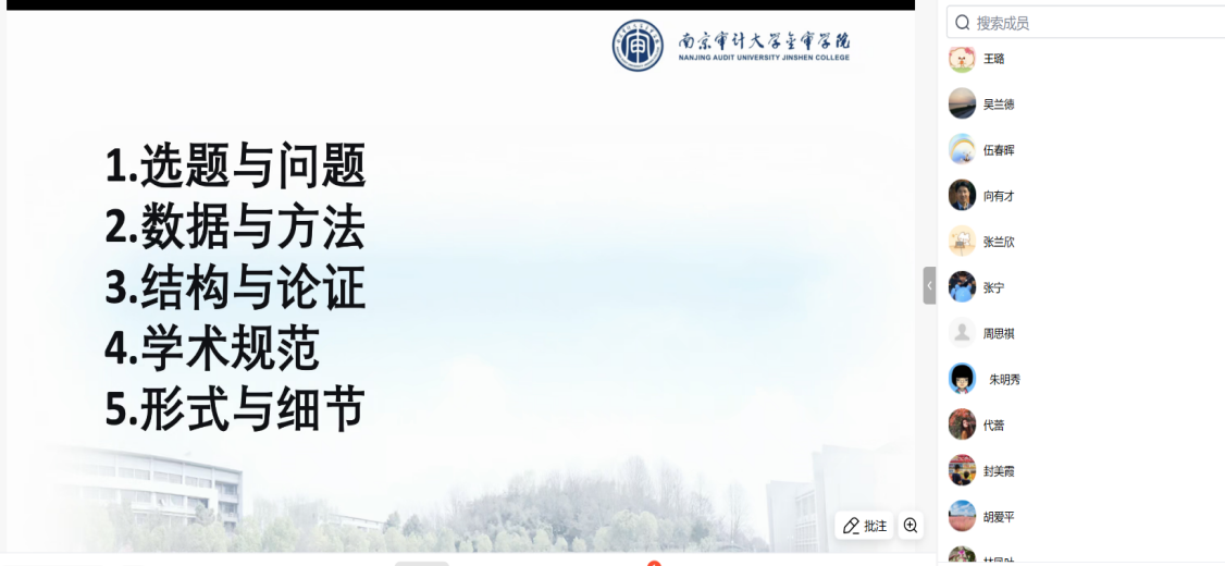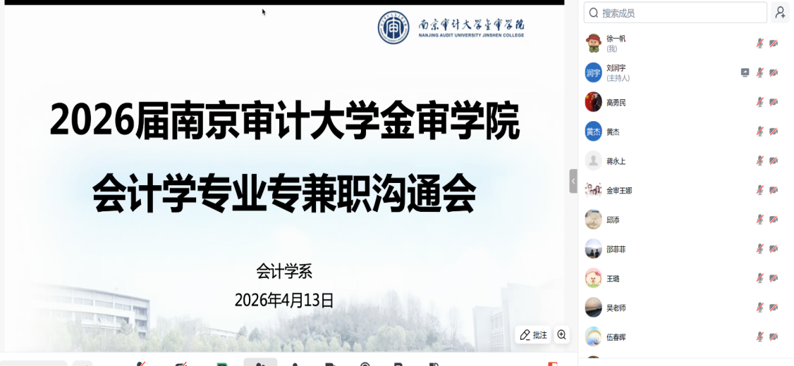 为全面落实学校质量、规模与效率发展理念,扎实推进2026届本科毕业论文收尾工作,强化日常教学规范管理,推动AI技术与教学深度融合,南京审计大学金审学院会计学系于4月13日召开毕业论文指导与课程教学规范专题工作会议。学院领导、全体专兼职教师参会,会议聚焦论文质量管控、教学纪律执行、智能教学应用三大核心任务,明确标准、压实责任、细化节点,全力保障本学期教学与毕业工作平稳高效推进。