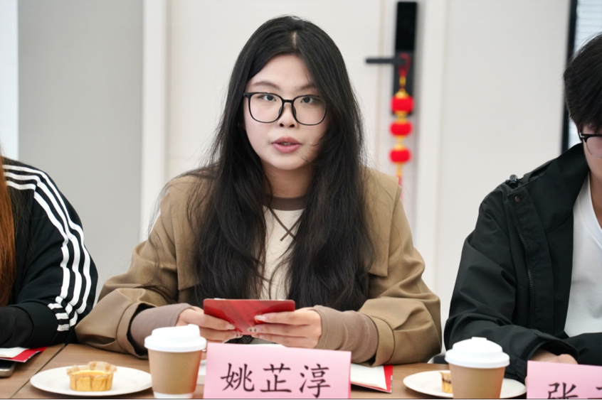 孙晋艳、姚芷淳、童言和张子俊围绕“做实干家,不做‘客里空’”展开深度探讨。他们结合专业学习、学生工作、志愿服务、实习实践等方面,生动剖析了当前青年学生中可能存在的“眼高手低、华而不实、脱离实际”等现象,并从不同维度阐述了新时代青年应如何拒绝形式主义,坚持脚踏实地,呼吁广大同学摒弃空谈、笃行实干,把小事做细做实,以真才实学肩负起青春使命。