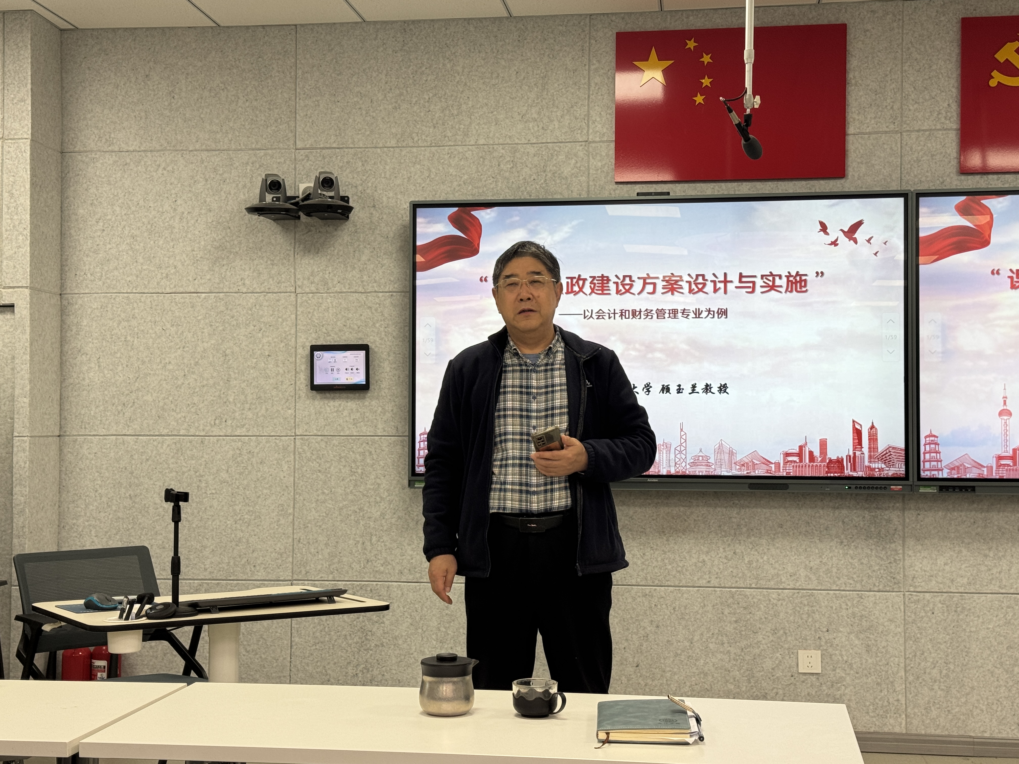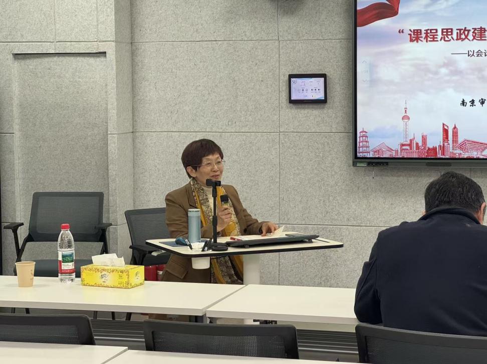 为深入推进课程思政建设,提升教师课程思政教学设计与实施能力,2026年4月22日下午,会计学院联合教师教学发展中心在B北211教室成功举办“课程思政建设方案设计与实施”教学沙龙。本次活动特邀南京审计大学顾玉兰教授主讲,由会计学院院长吴中春主持,王薇副校长出席,教务处处长杨新房、处长助理董建文参加,各学院、部教师代表参与交流。